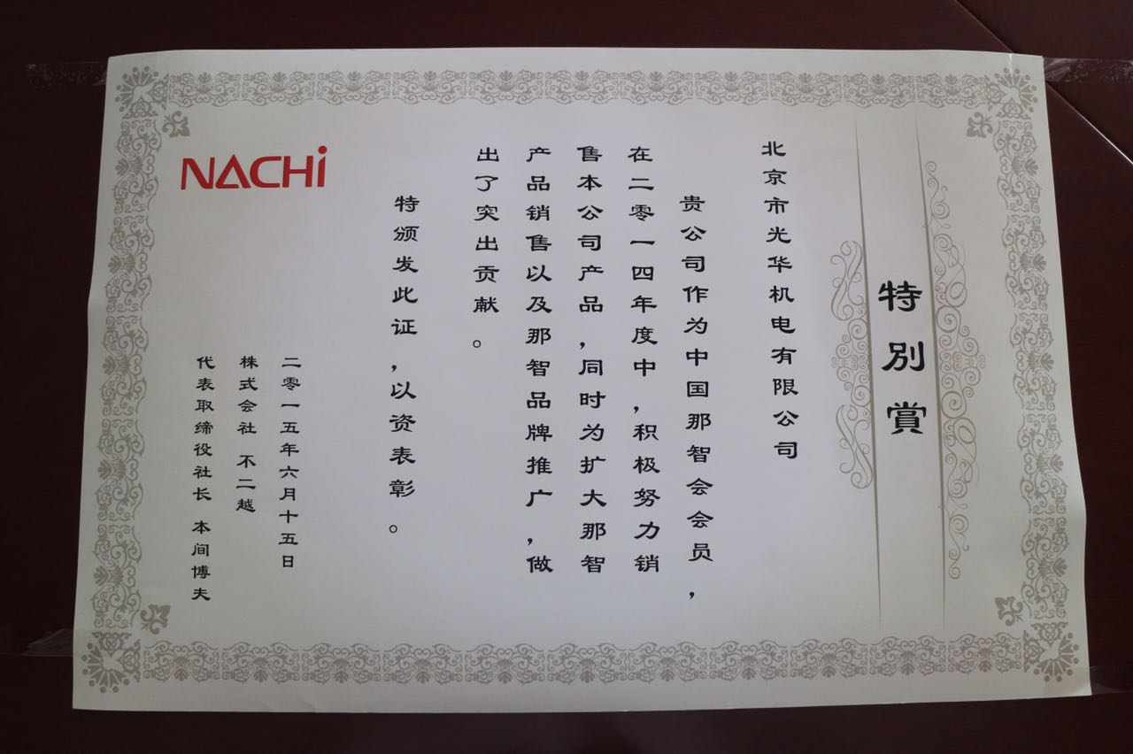 隨著中國工業(yè)智能化發(fā)展,我司利用自身客戶資源,自2014年起,全面代理日本株式會(huì)社不二越 NACHI品牌:液壓設(shè)備、切削刀具、工業(yè)機(jī)器人等產(chǎn)品。成為NACHI 品牌綜合代理商,促使光華機(jī)電向多元化產(chǎn)品結(jié)構(gòu)發(fā)展。